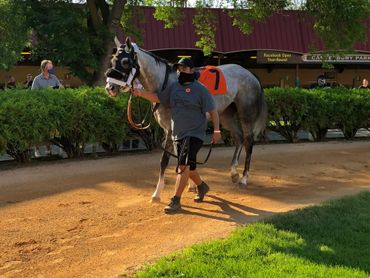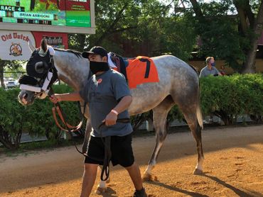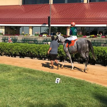 Turquoise Trail is a pretty gray 4 year old filly by Jersey Town out of a Half Ours mare. "TT" has run twice this season at Canterbury, improving each time. She will be running again soon!